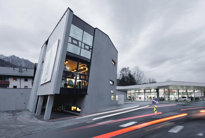 Im Bereich des neuen Kreisverkehrs wurde ein Büro-Geschäfts-Wohngebäude errichtet. Rund 160 m² neue Nutzflächen im EG und OG, sowie im KG entsprechende Lagerflächen wurden geschaffen. Beton Sandwichelemente mit glatten (eingefärbten) Betonoberflächen geben dem Bau seinen eigenen Charakter und garantierten eine rasche Bauabwicklung .