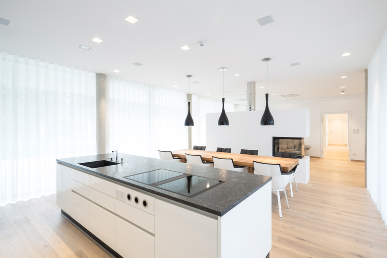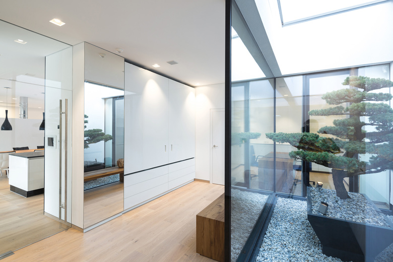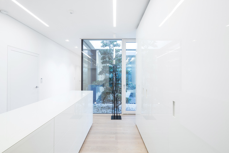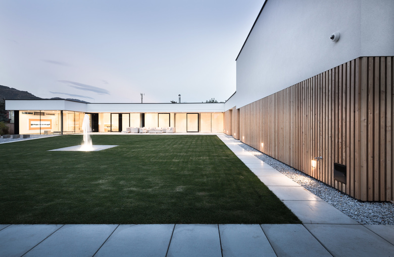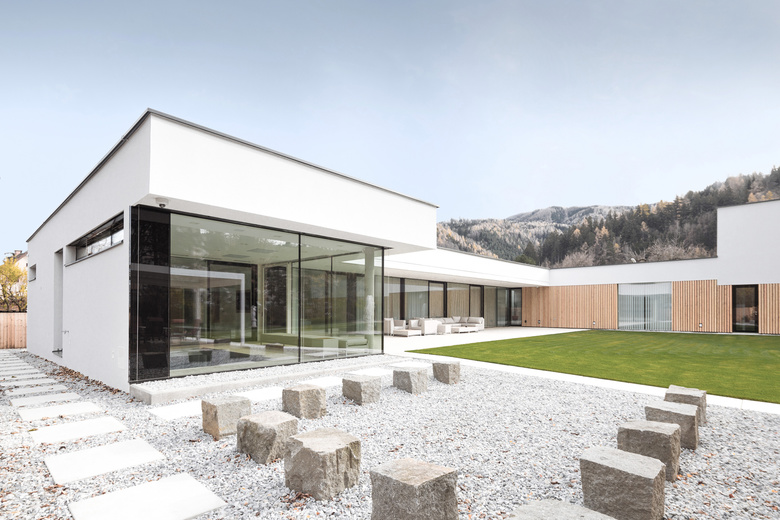 Dem Einfamilienwohnhaus in Leoben liegt ein umfangreiches Raumprogramm zugrunde. Das barrierefreie Wohnkonzept mit offenem Wohnraum lässt eine unmittelbare Blickbeziehung zum introvertierten Garten zu. Dieser Innenhof bildet auch das Zentrum des Atriumhauses. Der zweigeschossige Baukörper beinhaltet eine Einliegerwohnung und schützt zusätzlich den Innenhof vor Einblicken.