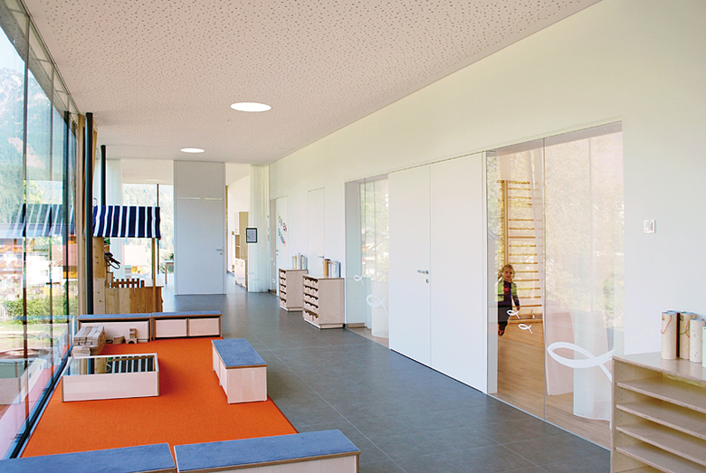 Bei der Neuerrichtung des Kindergartens wurde städtebaulich besonders auf die vorhandene Struktur Rücksicht genommen. Der Kindergarten soll das Ensemble des bestehenden Pfarrhofes ergänzen und L-förmig einen besonders attraktiven Freiraum für die Kinder schaffen. Die Ausrichtung der Gruppenräume erfolgt Richtung Osten, um für den Vormittagsbetrieb eine optimal Belichtung durch die Morgensonne zu ermöglichen. Eine mögliche Erweiterung um eine Gruppe oder eine Kinderkrippe kann Richtung Süden erfolgen und wird somit ebenfalls ideal ausgeleuchtet.