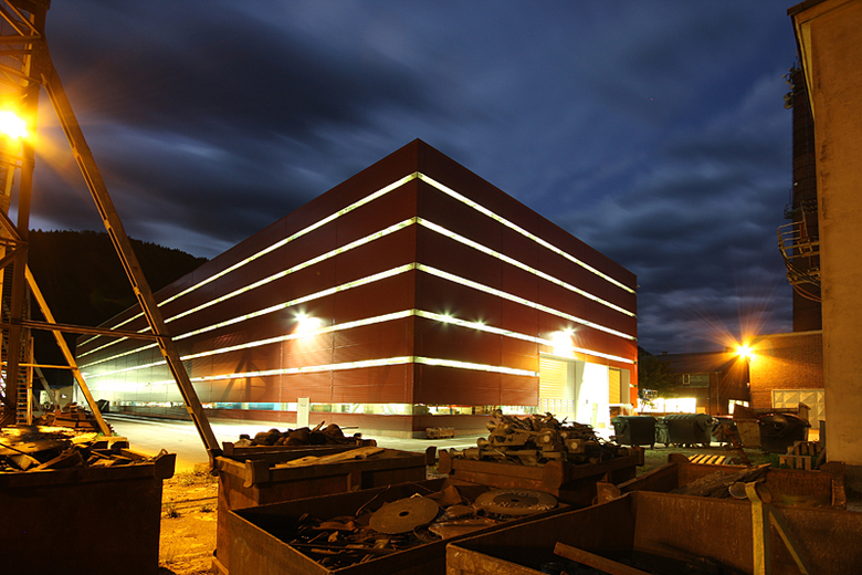 Am Gelände der MFL in Liezen entstanden mit Hochdruck 2 Hallen: eine Vormontagehalle mit den Ausmaßen 80 x 20m, sowie eine 100 x 30m große Montage-Halle .Verkleidet mit oxidroten Paneelen korrespondieren die beiden großvolumigen Hallen optimal mit den bestehenden Ziegelbauten des Geländes.
