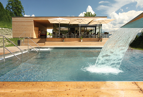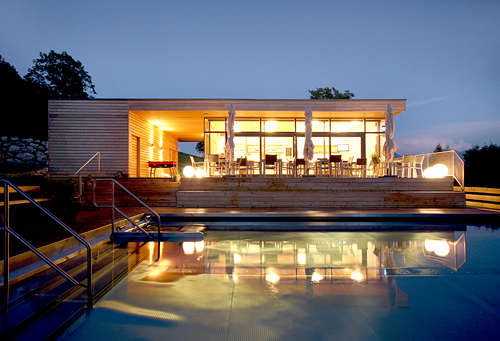 Bei der Planung des Naturbades wurde auf die einzigartige Lage des Grundstückes Rücksicht genommen. Die architektonische Haltung entstand aus dem Respekt zur Natur und verhält sich mit ihrer klaren Form und den naturbelassenen Materialien einfach und zurückhaltend.