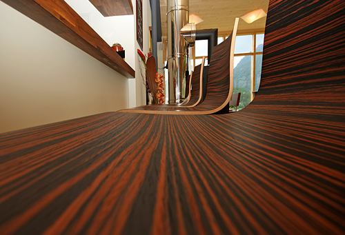 Das wichtige Element des Freibades ist der Steg, über den sämtliche Funktionsbereiche erschlossen werden. Aufgrund der länglichen Grundrissform der Badeanlage wurde er von Ost nach West ausgerichtet und führt die Besucher unmittelbar von der Strasse aus über die Kassa, Umkleidekabinen, Sanitärbereiche & Aussichtsterrasse Richtung Beckenanlage.