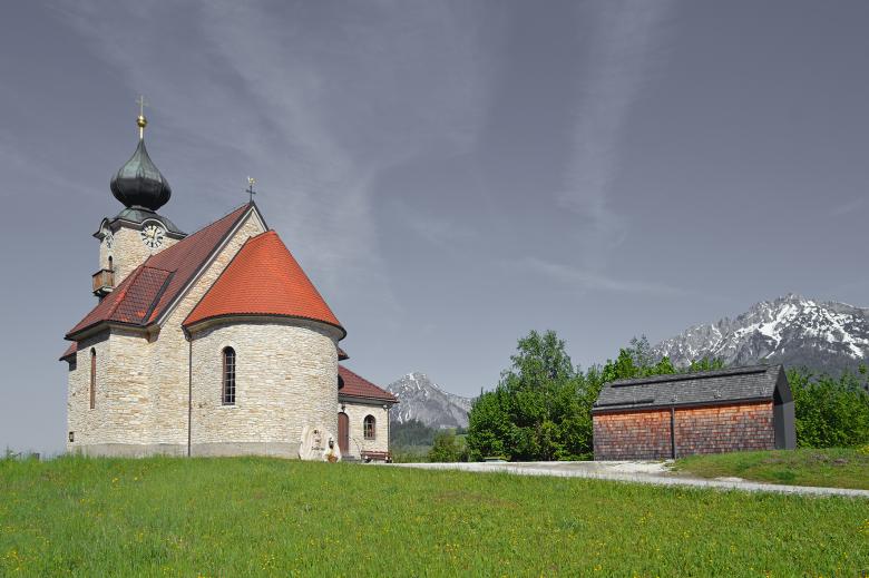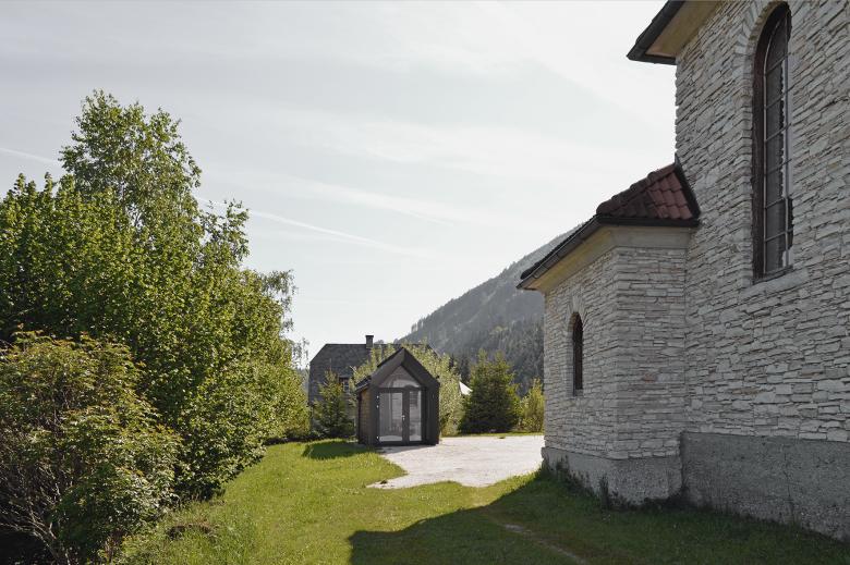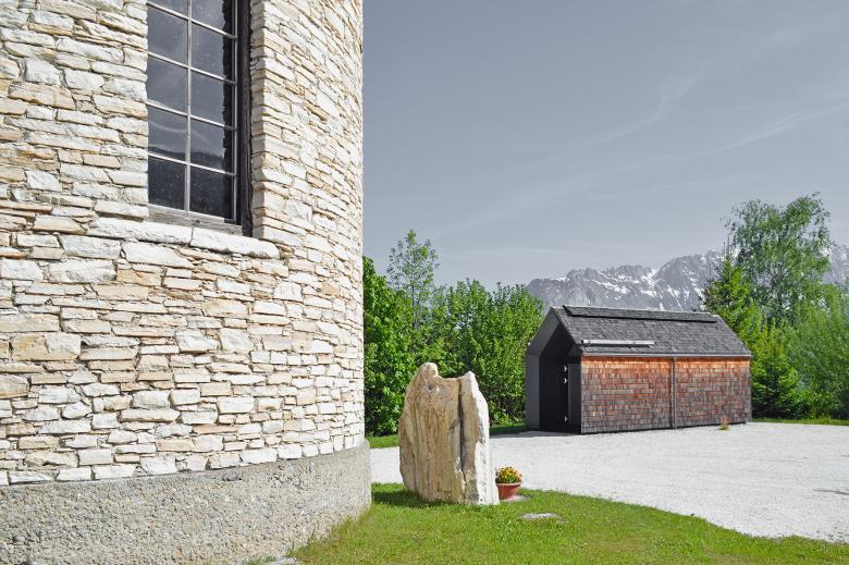 KREINERarchitektur ZT GmbH wurde von der Gemeinde Sölk mit der Planung und Umsetzung eines Nebengebäudes zur kath. Filialkirche in Stein an der Enns beauftragt. Die Wünsche der Bauherrschaft sowie die spezielle Grundstücksform definierten einen schlichten Baukörper mit steilem Satteldach, welcher selbstbewusst auf den Platz und dessen Kontext zur Kirche reagiert. Das Nebengebäude befindet sich auf einem Plateau, ca. 50 Meter über dem Ennstal, ist so situiert, dass zusätzlich ein neuer Platz definiert wurde.