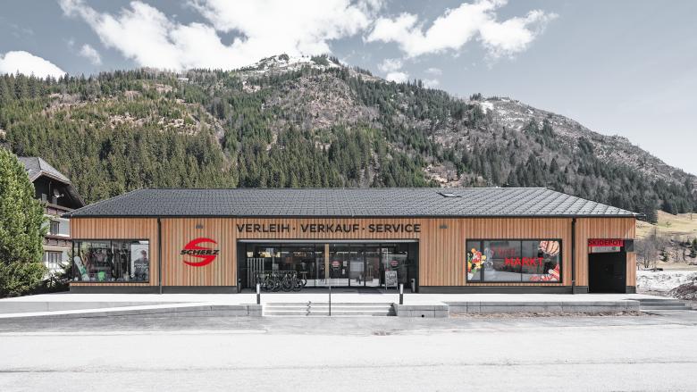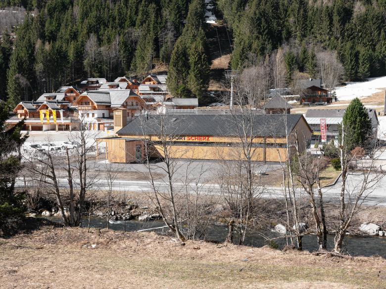 Beim Entwurf des neuen Sportfachgeschäftes in Donnersbachwald wurde das gesamte Umfeld in Bezug auf Topographie, Blickbeziehungen und bestehende Bebauung analysiert und in die Projektentwicklung aufgenommen.