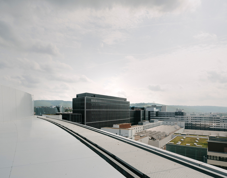 Das Daimler Headquarter liegt direkt am Haupteingang des Daimler-Werkes in Stuttgart- Untertürkheim und in unmittelbarer Nachbarschaft zum Mercedes-Benz Museum. Durch seine Höhe von circa 60 Metern überragt das Gebäude der Hauptverwaltung nahezu alle anderen Bauwerke in der Umgebung und markiert den Hauptzugang ins Werk. Die Neugestaltung fasst die Gebäudeteile aus den unterschiedlichen Bauphasen mit einer Fassade aus dunkel eloxiertem Aluminium zusammen. Die filigran gerasterte, transparent wirkende Fassade verleiht dem Eingangsbereich des Werksgeländes einen eleganten, zeitgemäßen Ausdruck. Das moderne Verwaltungsgebäude bietet ein Maximum an Flexibilität für die Umsetzung von aktuellen und zukünftigen Arbeitsweltkonzepten.
