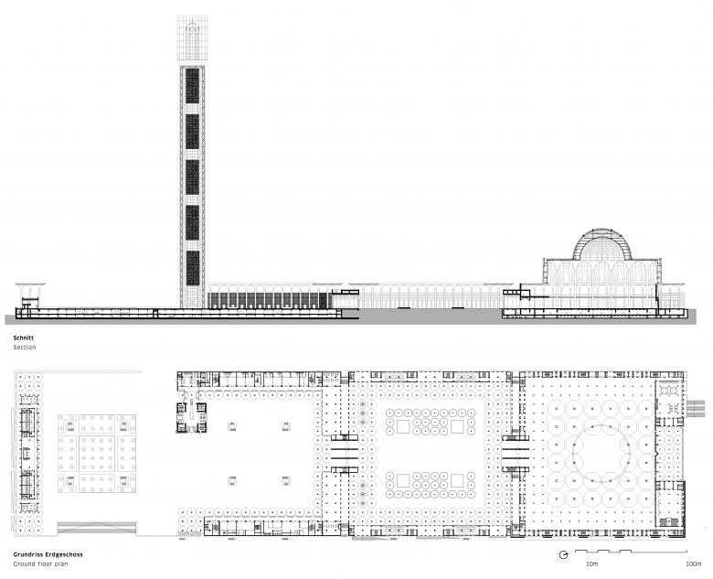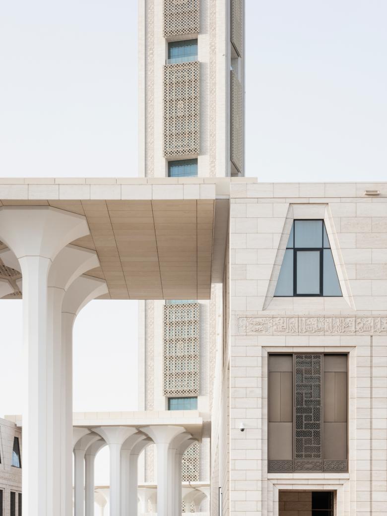 In der Bucht von Algier entstand die drittgrößte Moschee der Welt. Sie vereint verschiedene kulturelle und religiöse Einrichtungen. Sie ist durch die imposante Höhe des Minaretts von ca. 265 Metern sowie durch die Größe der Gesamtanlage zugleich Landmarke und Impulsgeber für eine neue Stadtentwicklung in Algier. Der Gebetssaal ist ein gewaltiger Kubus, der bis zu 35.000 Menschen fasst. Der Innenraum bietet den Besuchern durch die Wahl der Materialien, das zurückhaltende Dekor und die indirekte Belichtung ein eindrucksvolles Raumerlebnis.