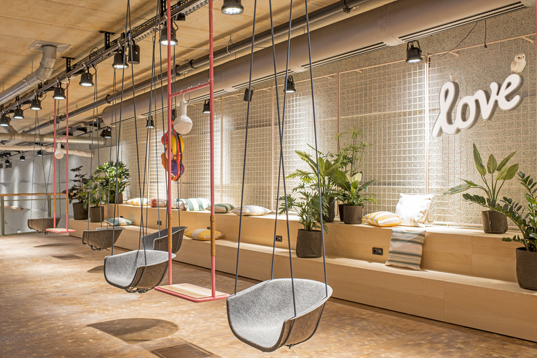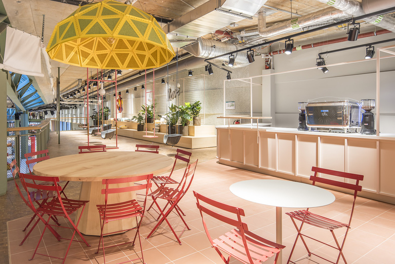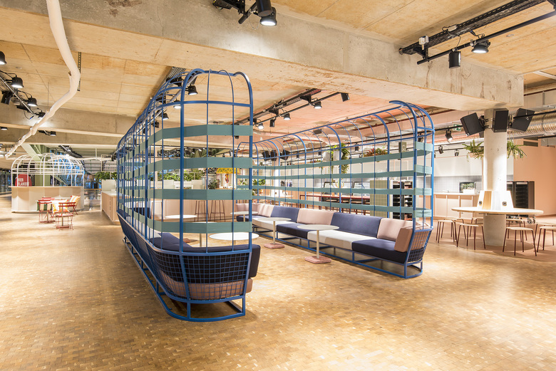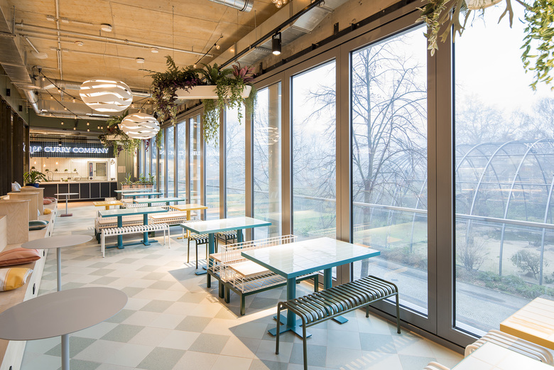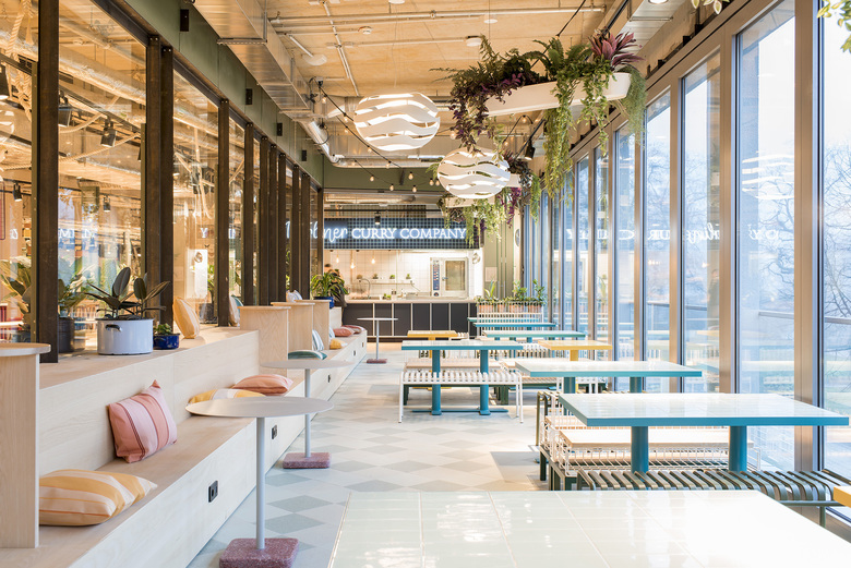 Das Designstudio Aisslinger unter der Federführung von Designer Werner Aisslinger hat das 1.800 Quadratmeter große Areal des Kantini Foodmarkets gestaltet und dabei mit ungewöhnlichen Materialkombinationen und farbenfrohen Installationen eine erfrischende Lifestyle-Landschaft kreiert. Verschiedene Sitzgelegenheiten – von Sofabänken über Sitztreppen und Schaukeln – laden Gäste jeden Alters zum Verweilen ein. Absolutes Highlight des Foodmarkets ist die lichtdurchflutete Loggia mit einem 18 Meter langen Panoramafenster und einem direkten Blick auf die Vogelvoliere des Berliner Zoos.