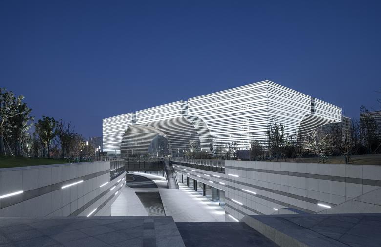 Im Changzhou Culture Plaza bilden Museen und eine Bibliothek die kulturellen Highlights. Die sechs Pavillons kragen bogenförmig nach oben aus und öffnen in ihrer Mitte einen überdachten öffentlichen Raum. Ein Wasserlauf, der das 17 Hektar große Gelände durchfließt, verbindet die unterschiedlichen Bereiche miteinander.