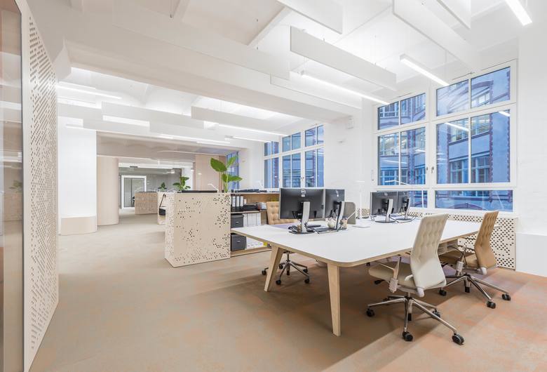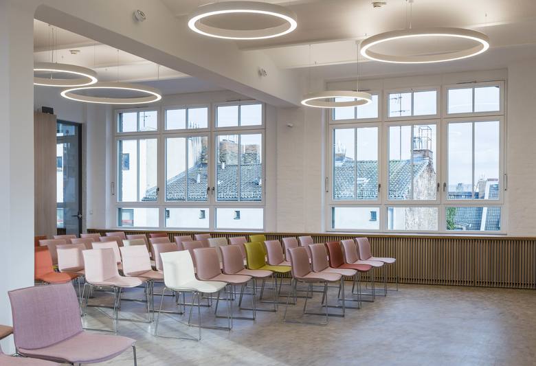 Der Wikinghof bietet eine offene Arbeitsumgebung, die einen Rhythmus von Büro- und Entspannungsbereichen in einem historischen Kontext schafft. Das denkmalgeschützte Projekt wurde ursprünglich 1899 erbaut und 1912 erweitert. Die Funktion war von Anfang an ein Wohnhaus im Vorderhaus und Produktionsebenen im hinteren Bereich zu den Innenhöfen hin.