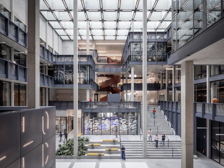 Ziel des Projekts war es, eine inspirierende und flexible Arbeitsumgebung für etwa 800 Mitarbeiter zu schaffen, die den interdisziplinären Austausch und die Forschung fördert. Die enge Zusammenarbeit mit der Technischen Universität München, die mit neun Lehrstühlen und 120 Mitarbeitern am Campus vertreten ist, konzentriert sich auf die Verwendung von künstlicher Intelligenz (KI) in den Bereichen der Umwelt-, Sozial- und Unternehmensführung (ESG) oder auch dem Quantencomputing.