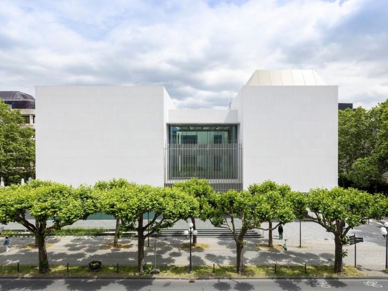 Das von dem renommierten japanischen Architekten Fumihiko Maki entworfene Gebäude besticht durch eine klare, schlichte Architektur: Die kristalline weiße Fassade zieht sich dabei von außen durch den Eingangsbereich bis in den Innenhof, ebenso wie der Boden aus dunkelgrünem Granit. Bodentiefe, rahmenlose Fenster im Erdgeschoss schaffen offene, lichtdurchflutete Bereiche und lassen das Gebäude scheinbar „schweben“.