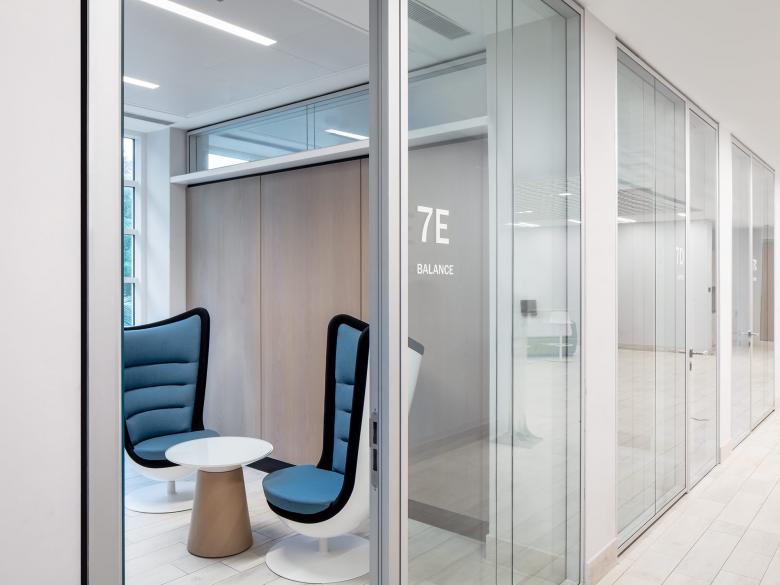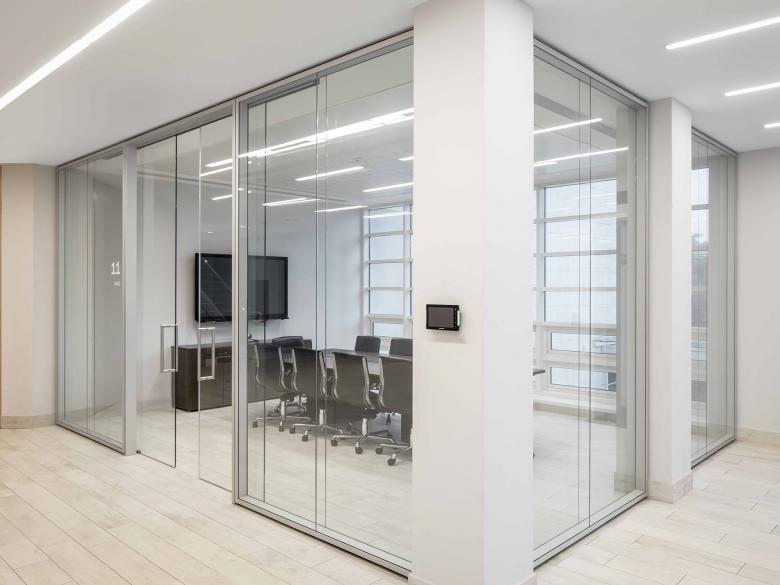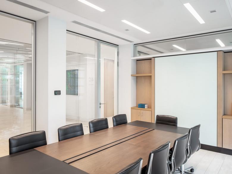 Lindner lieferte neben den Licht-/Deckenlösungen nicht nur das Doppelbodensystem NORTEC, sondern applizierte bereits werkseitig nach Kundenwunsch einen speziellen Keramikfliesenbelag bzw. Eichenparkett mit edlem Finish und individuellen Mustern. Auch bei den Trennwänden und Türen in den Büros waren Sonderanfertigungen gefragt.