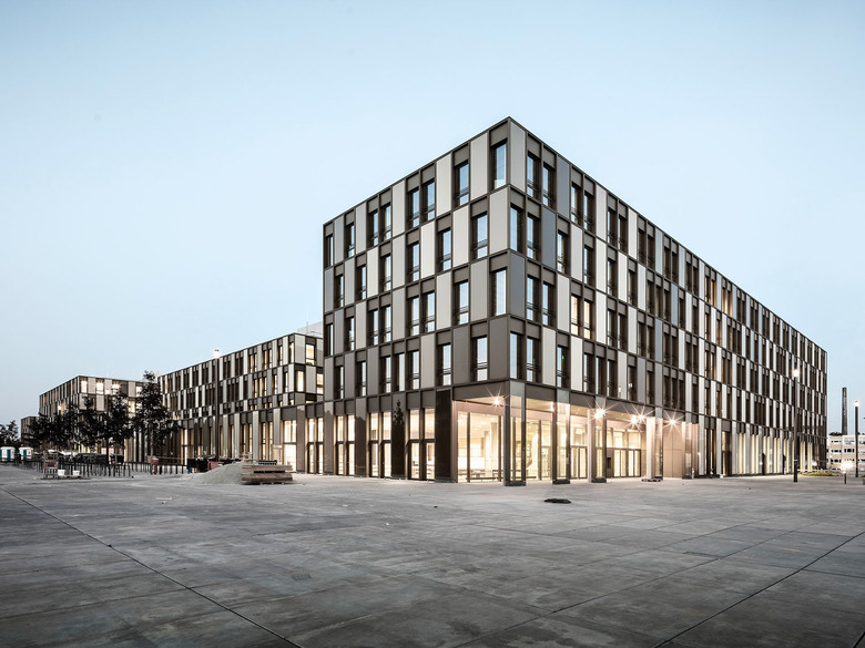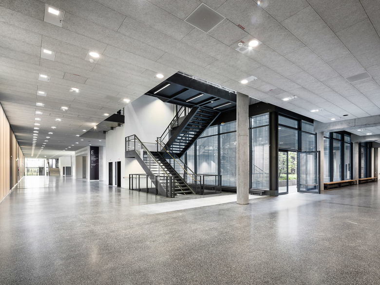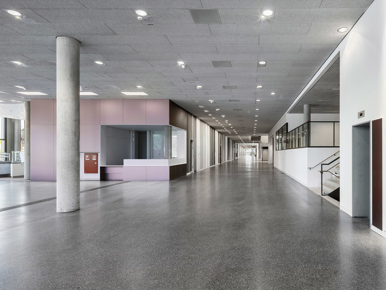 In diesem umfangreichen Neubau misst allein die Magistrale im Erdgeschoss 200 Meter Länge. Von dort aus sind alle 15 Hörsäle sowie das Audimax mit 450 Sitzplätzen zentral zugänglich. Die separierten Seitentrakte für die einzelnen Fachbereiche sind bis zu 125 Meter lang. Insgesamt befinden sich hier rund 200 Seminarräume, die für Lehrveranstaltungen in kleineren Gruppen eingerichtet wurden. Weitere flexibel nutzbare Räumlichkeiten, offene Kommunikationsbereiche und lichtdurchflutete Innenhöfe sowie Forschungs- und Laboreinheiten erweitern das Raumangebot des Campus.