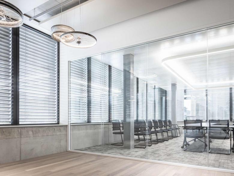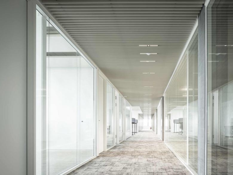 Lindner war maßgeblich am Innenausbau des Gebäudes beteiligt – der Komplettanbieter produzierte, lieferte und montierte Trennwände, Türen und Böden: Beispielsweise wurde die Glastrennwand Lindner Life Clear ursprünglich für das Polizei- und Justizzentrum in Zürich entwickelt und entspricht daher bereits den strengen schweizerischen Anforderungen in Bezug auf Brandschutz, Erdbebensicherheit und Akustik.