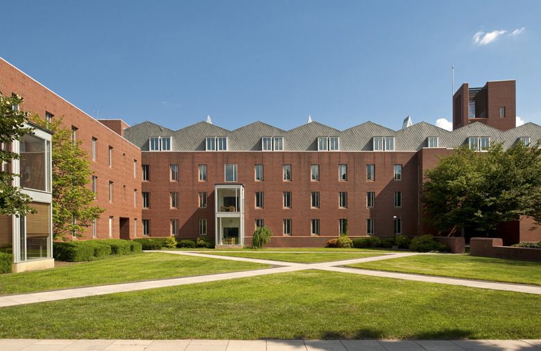 The building is a 267-bed dormitory formed along a double-loaded corridor, configured as a “J” in plan to optimize its site between a 1960s dormitory complex by Hugh Stubbins to the west and a 1980s laboratory by Venturi Scott Brown to its east. Completed in 1998, the dormitory’s mass defines three sides of a residential courtyard, while the fourth side is edged by a low wall and a tree-lined allée. Glass and aluminum pavilions housing the major public functions attach to the three courtyard edges.