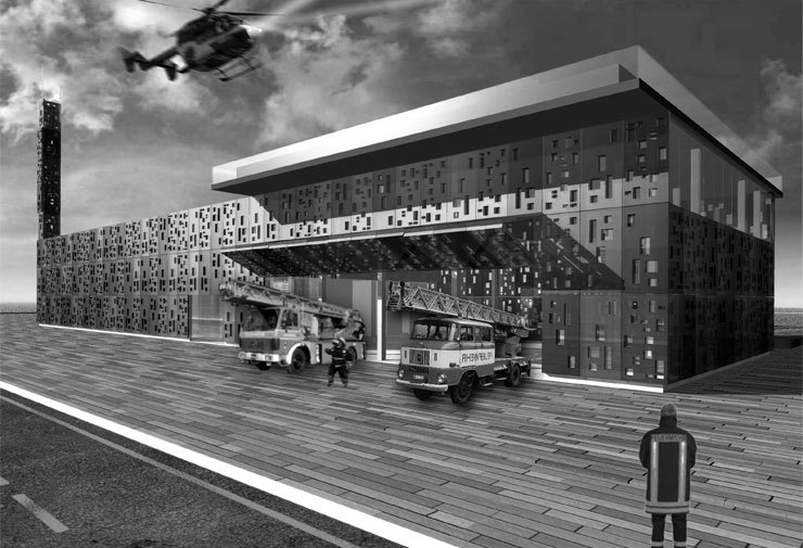 The fiberglass, proposed for the helipad’s structure and the pavement , the communication tower structure and the ventilated facade offer a series of qualities that makes it convenient, such as: high mechanical performance, light weight, easy transformation, 0 maintenance, corrosion resistance, UVA protection, thermal and electrical insulation , sunlight permeability, electromagnetic transparency, plastic possibility of pigmentation, etc.