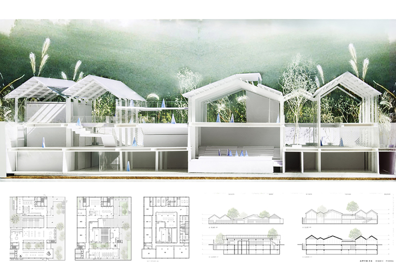 What kind of community activity center should be built in such a historical block short of land, public space and green space? Through the analysis of the current situation of the site, the following three design objectives have been put forward: inheriting history, creating an active public space and improving the quality of street space. 1. Inheritance of history. The new building, with restrictions on the height and form of the building, needs to be in harmony with the historic neighborhood. a) The inheritance with traditional Siheyuan buildings is reflected in the architectural layout, spatial organization and materials. b) Maintaining fabric is much more important in this case. The overall layout of the building conforms to the architectural texture of the surrounding area. In addition, the building faces south with a wide face and a short depth, which helps to gain more sunshine. c) The set of multiple yards in the north-south is an interpretation of the traditional courtyard pattern. d) Modern materials such as metal and glass bricks were used on the facade, representing a modern transfer of masonry structures. 2. Public space The most important function is to rebuild the neighborhood relations and satisfy the modern life needs. a) Whether local residents, foreign residents or tourists, they can exchange ideas, relax or learn skills in the community activity center, so as to achieve the integration of different social groups. b) A variety of activities are provided in the community activity center, including library, café and outdoor theater.