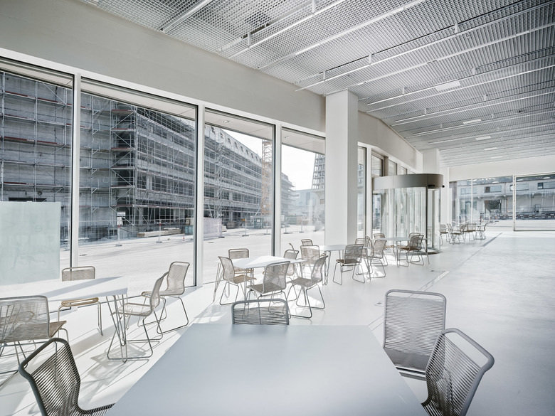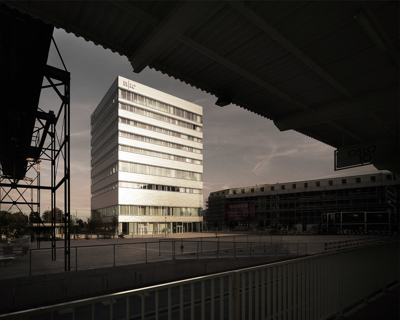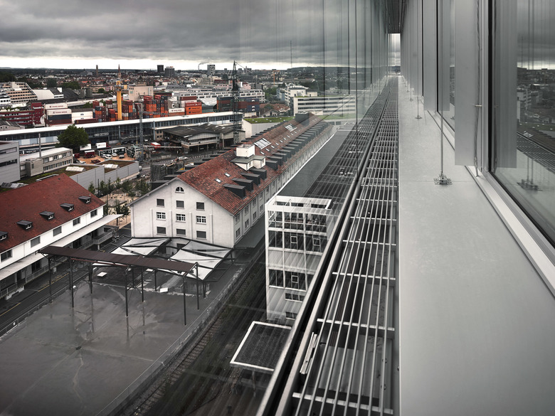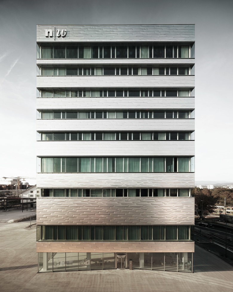 Die Hochschule für Gestaltung und Kunst bildet das Initialprojekt auf dem Dreispitzareal. In dem 47 m hohe Gebäude befinden sich die Vorlesungssäale, Büros, Werkstätte und die Ausstellungräume sowie im obersten Geschoss die Bibliothek. Der Grundaufbau basiert auf einem asymmetrisch im Grundriss liegenden Kern, wodurch sich vier unterschiedlich breite Raumzonen ergeben, die flexibel genutzt und durch Leichtbauwände und Vorhänge unterteilt werden. Die Fassade erweckt bewusst Assoziationen zur Industriearchitektur. Das Gebäude ist Minergie P- Eco ® zertifiziert.