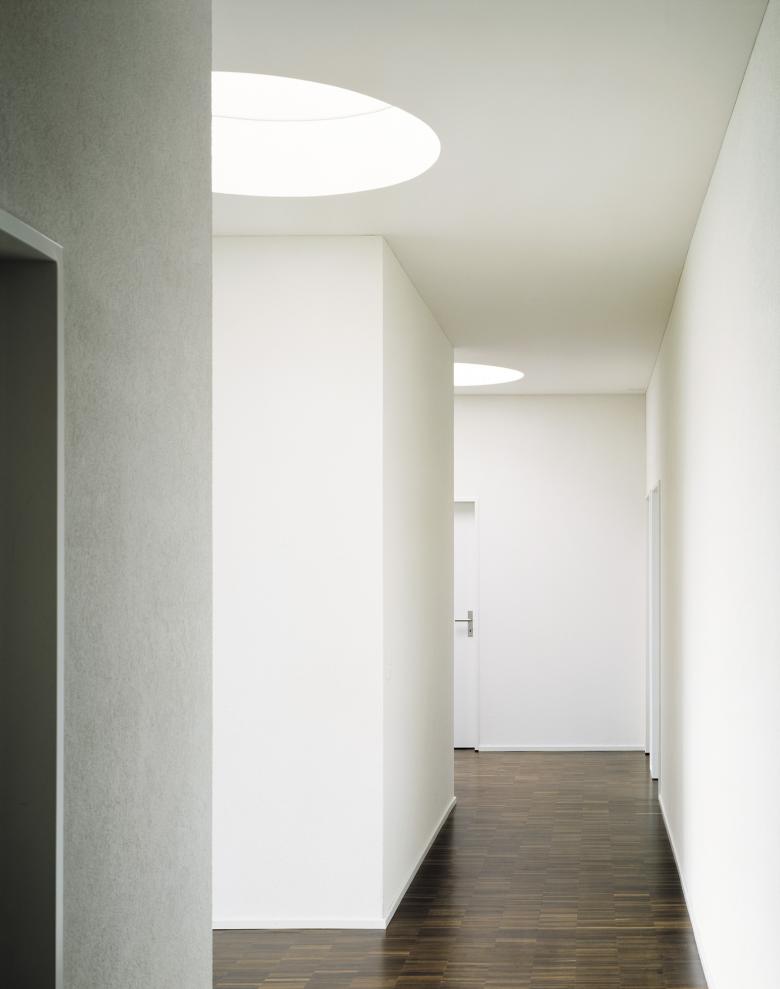 Das Gebäude bildet die erste grosse Etappe auf dem neuen Erlenmattquartier. Die mäandrierende Gebäudefigur mit unterschiedlichen Traufhöhen umschliesst zwei Hofbereiche. Horizontale Fassadenbänder aus dunklem Klinkerstein relativieren das üppige Volumen und bilden eine Reminiszenz an den früheren Güterbahnhof. In den Obergeschossen finden sich insgesamt 229 Wohneinheiten. Durch die Modifizierung einer Grundeinheit entstehen 60 verschiedene Wohnungstypen. Der Entwurf begegnet der heutigen Bedeutung von individuellem Wohnen durch eine Vielfalt von Wohnungen mit flexibler Nutzung.