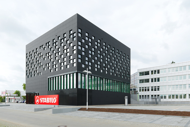 Nach dem Gewinn des beschränkten Realisierungswettbewerbs im Jahr 2008 wurde mvm+starke 2011 von der Schwanhäuser Grundstückbesitzholding GmbH und Co. KG mit der Planung für ein neues Verwaltungsgebäude mit integriertem Konferenz- und Rechenzentrum als Erweiterung des Hauptsitzes für die Firmengruppe Schwan STABILO auf dem Gelände in Heroldsberg beauftragt. STABILO CUBE, der schwarze Würfel, ist als Markengebäude der bauliche Repräsentant der Firma Schwan STABILO auf dem Firmengelände in Franken. Gibt die eindeutige und gewohnte Form noch keine Rätsel auf, so sind "Farbe" und Fassadengestaltung des Würfels ungewöhnlich und massgebend für den Kontrast zur Umgebung. Wie bei einer "black box" gibt die lochkartenartig perforierte Fassade Rätsel über Inhalt und Geschossigkeit des Würfels hinter der dunklen Fassade auf. Grosszügige Öffnungen im Bereich des showrooms "Planetkonzept Würfel", des Foyers und des Konferenzzentrums geben Einblick und lassen einen andersartigen, farbigen Innenraum durchscheinen und nach aussen treten.
