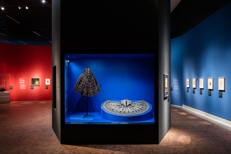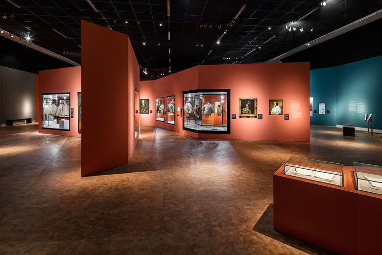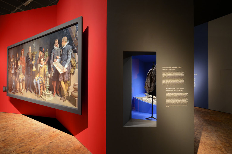 Die Ausstellungsgestaltung feiert die Exponate in einer eleganten und spannenden Schau. Wie auf Laufstegen werden die Kleidungsstücke in verspiegelten Vitrinen von allen Seiten besonders lebendig präsentiert. Zudem wird der hohe Wert der Exponate für Mentalitäts- und Kulturhistorik hervorgehoben. Durch Nischen, farbliche Kontraste und die Kontextualisierung der Kleidung mit anderen Exponaten werden Mode und Menschen der Renaissance und des Frühbarocks für die Besucher wieder lesbar.
