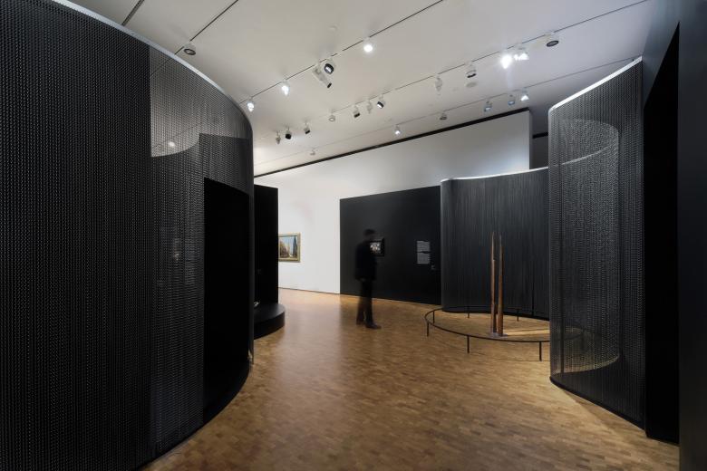 Im Vordergrund steht dabei jeweils das Unbewusste und das Selbst. Eine Abfolge von schwarzen und weißen, unterschiedlich inszenatorisch geprägten Räumen unterstütz dabei die Themen der Ausstellung, die sich bewusst und kontrastreich von den üblichen konventionellen Präsentationsformen in Kunstausstellungen absetzen, ohne dabei das Thema des Unbewussten auch in der Inszenierung zu verlassen. Direkt oder unbewusst können die eingesetzten Gestaltungselemente und Materialien so auch erlebt werden. Das Thema des Unbewussten im Traum findet sich z.B. in schräg eingestellten Wandscheiben mit „raumauflösenden“ weiß-transluzenten Fadenvorhängen wieder. Schräg in den Raum eingestellte Wandscheiben mit schwarz spiegelnden seitlichen Aussparungen verweisen auf das Verborgene, auf die Zwischenbereiche des Bewusstseins. Ein gefliester Raum bildet eine mögliche Analogie zu einem Schlachthaus im Zusammenhang mit der zum Teil drastischen Darstellung weiblicher Körper. Kettenvorhänge werden im Bereich der sexuellen Begierden und Perversion raumbildend und inhaltlich eingesetzt. Ein Wald aus weißen Stangen bindet das Thema Natur in die Ausstellung ein. Die Ausstellung endet mit dem Bereich „Haunted Identities“ und der Skulptur „The Doll“ von Hans Bellmer auf einem Podest aus Chromstahlspiegeln.