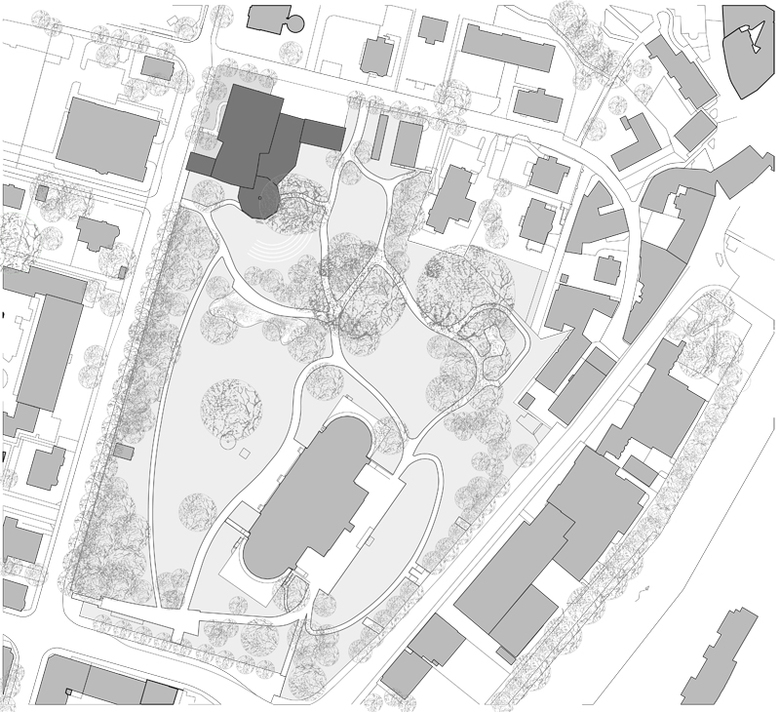 An dieser Stelle setzt der vorgeschlagene Entwurf für das denkmalgeschützte Kurtheater ein: Ein respektvoller Umgang mit der noch intakten Altbausubstanz (Eingangshalle, Zuschauerraum), eine Rekonstruktion verloren gegangener Qualitäten (Eingangs-Vordach) und ein behutsames Einpassen von Neubauteilen unter Rücksichtnahme auf das volumetrisch empfindliche Massengleichgewicht (Foyer, Hinterbühne). Diese neuen Haupteingriffe sind geprägt von einer strukturellen und räumlichen Grosszügigkeit, die primär die Qualitäten eines Hallenbaus bestimmen.