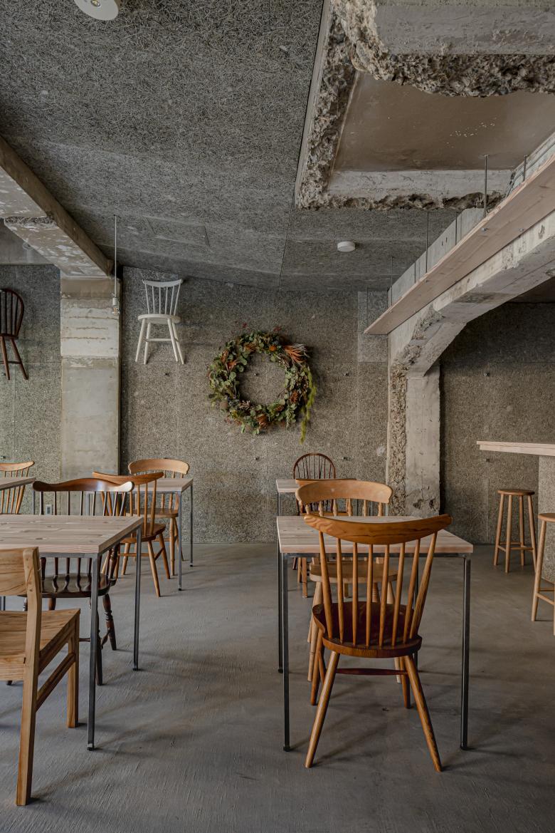 店内の家具などもすべてアンティークなどを修理・修復したものを使用し、店全体が「Re」の集積によって構成されている。