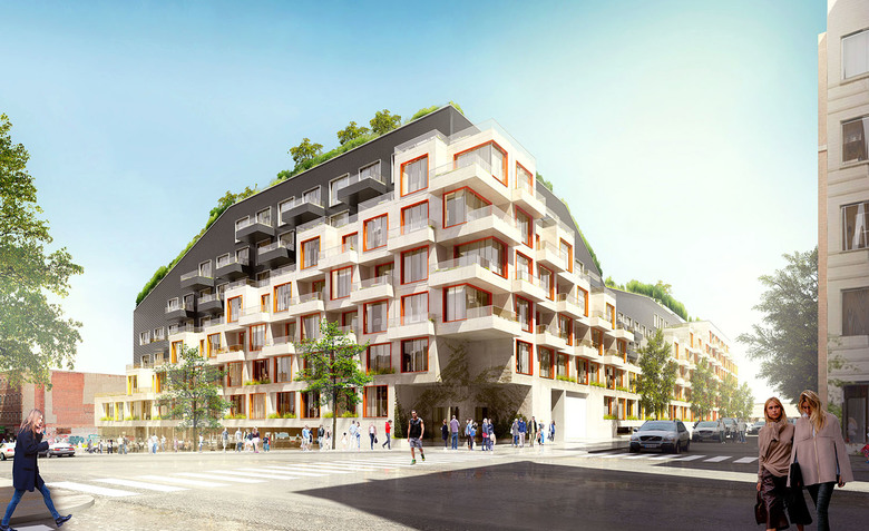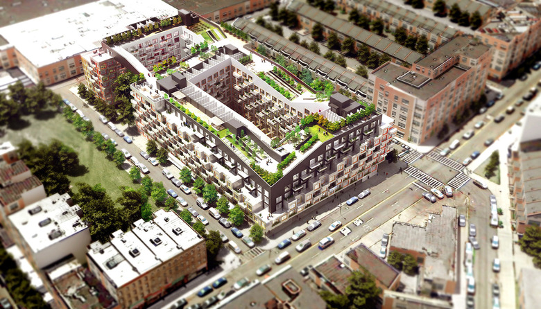 With today’s social and technological paradigms in mind, 10 Montieth invites residents into a ground-breaking world of accessibility and connectivity, one that celebrates user experience and champions shared perspective. Encapsulating one full block in Brooklyn’s coveted Bushwick neighborhood, 10 Montieth’s distinct modular form holds studio, one, and two-bedroom apartments at affordable and market rates, each pixelating the building’s façade with cascading terraces. Here, living space extends beyond each apartment’s four walls with ample outdoor space: the sloping rooftop garden is primed for group activities or moments of solitude while the inner courtyards serve as unexpected urban retreats.