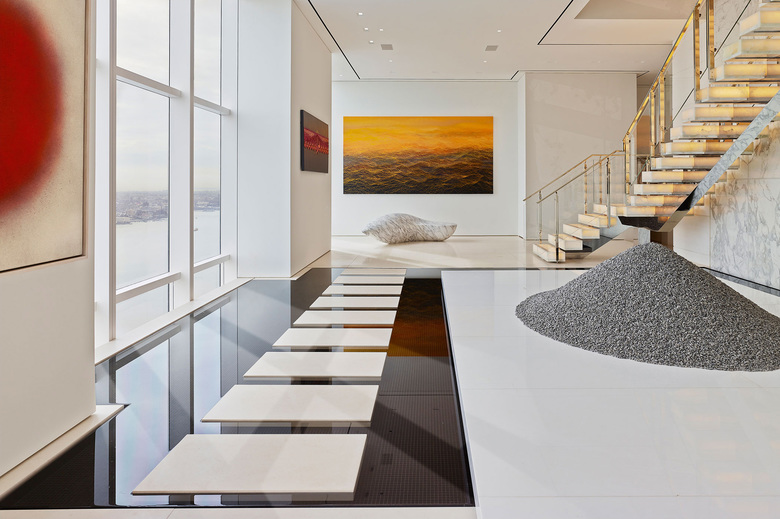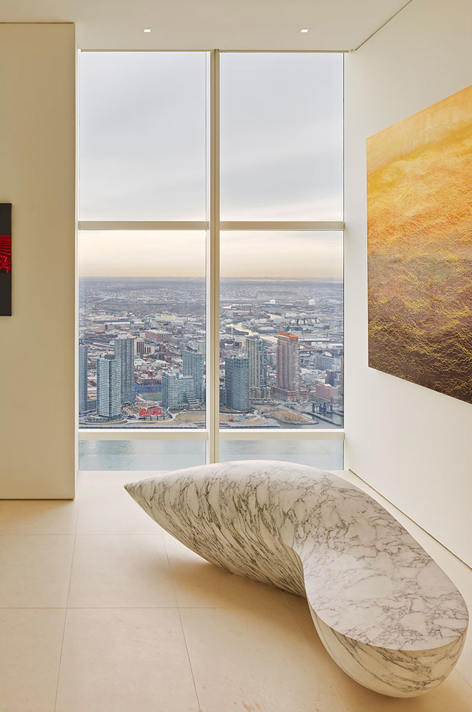 We focused the modern and minimalist interior spaces on the artworks, leaving the peripheral rooms to be absorbed by Manhattan views. As one of the largest penthouses in New York, we marry this floating art gallery in the sky with the city’s horizon to create an inimitable experience.