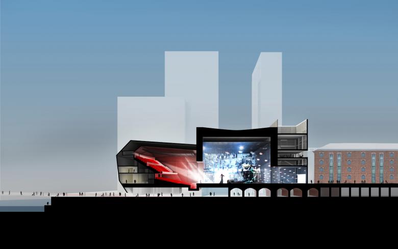 Since it was launched in 2007, Manchester International Festival has taken place in existing buildings both large and small throughout the city. But spaces with the qualities needed by the art pieces commissioned by the Festival are fewer and fewer, disappearing amid Manchester’s fast-paced redevelopment into England’s new economic hub. In 2015 Manchester City Council launched an architecture competition for a new kind of art venue for Manchester International Festival (MIF), capable of hosting both art performances and exhibitions, separately or simultaneously.