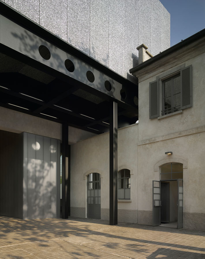 Located in a former gin distillery dating from 1910 in the Largo Isarco industrial complex on the southern edge of Milan, the new home of Fondazione Prada is a coexistence of new and regenerated buildings including warehouses, laboratories and brewing silos, as well as new buildings surrounding a large courtyard.