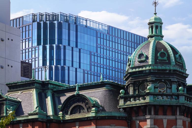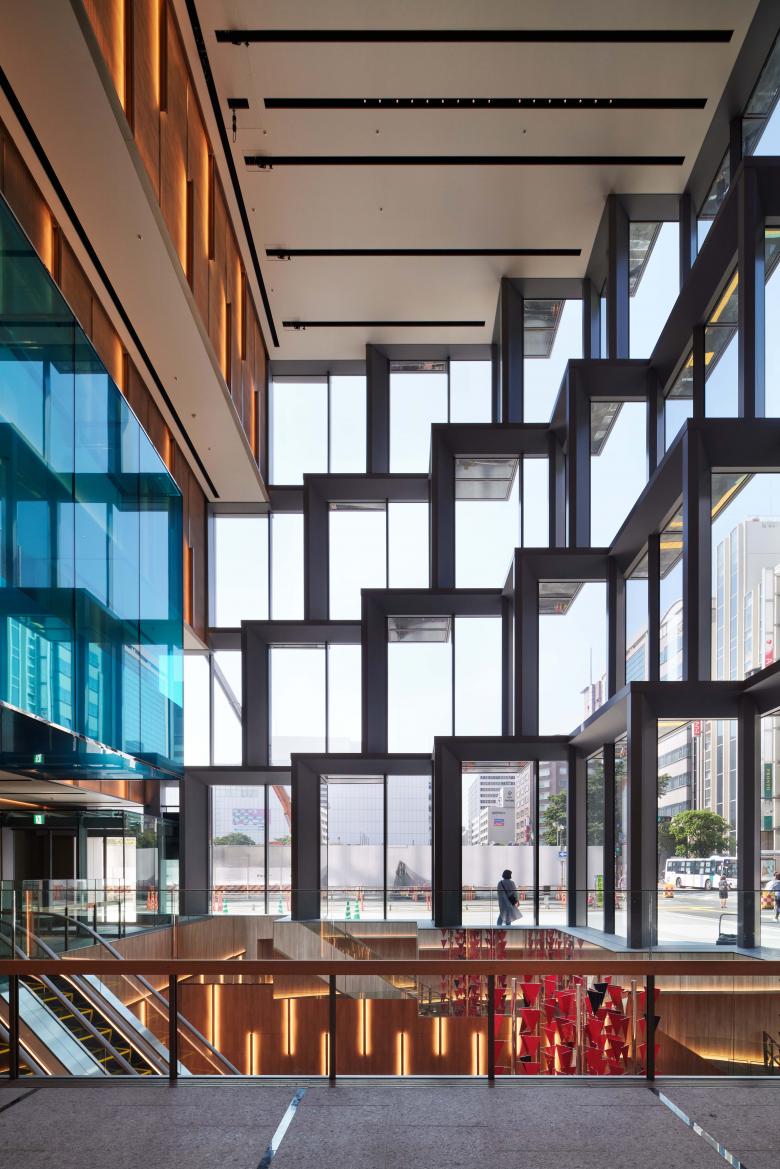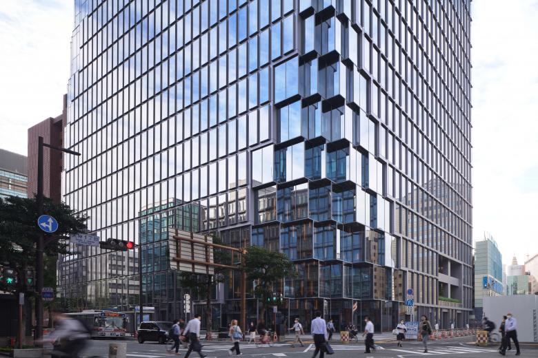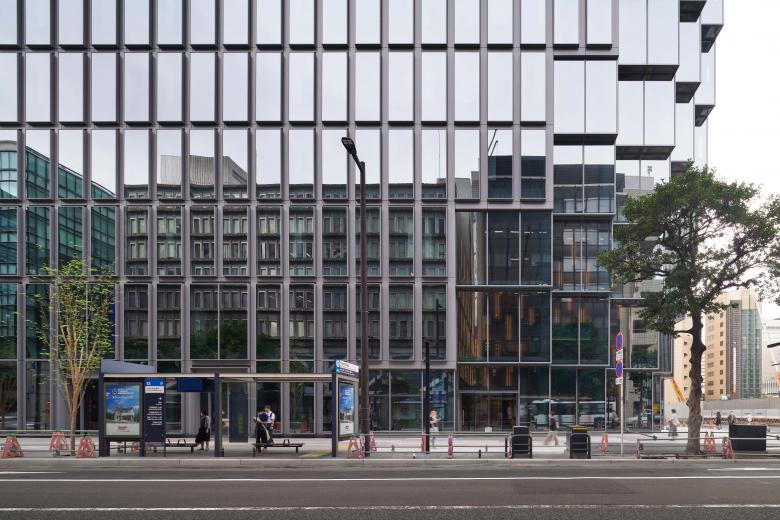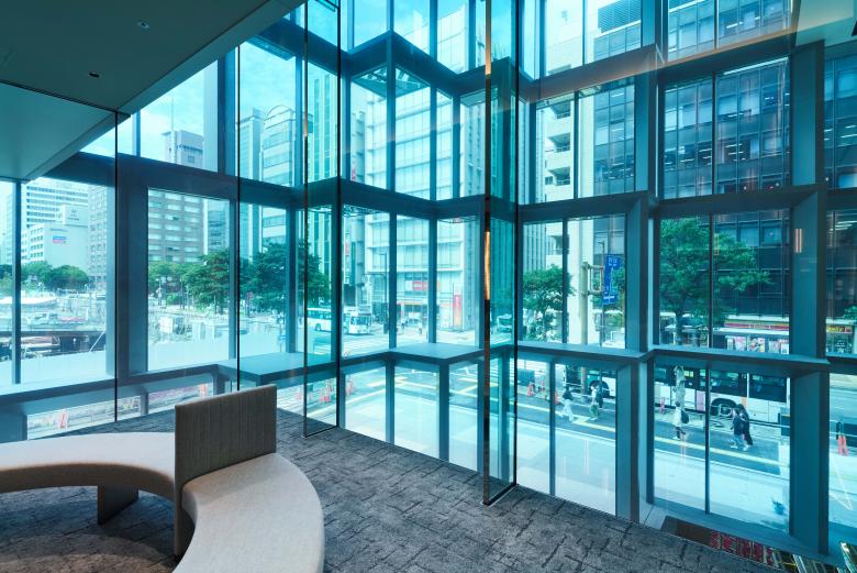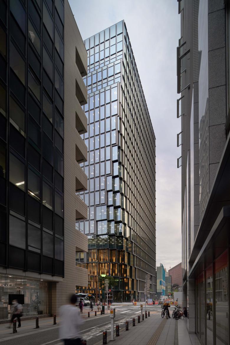 The site is located at the intersection of two major axes: Meiji-dori—the city’s established avenue of commerce lined with financial offices—and Inabacho-dori—an organic pedestrian corridor linked to the City Hall Plaza and Galleria and lined with intimate cafes. Below ground, the site connects to a subway station and shopping concourse. The building program is predominantly workspace, within a given massing that is neither low-rise nor tower.