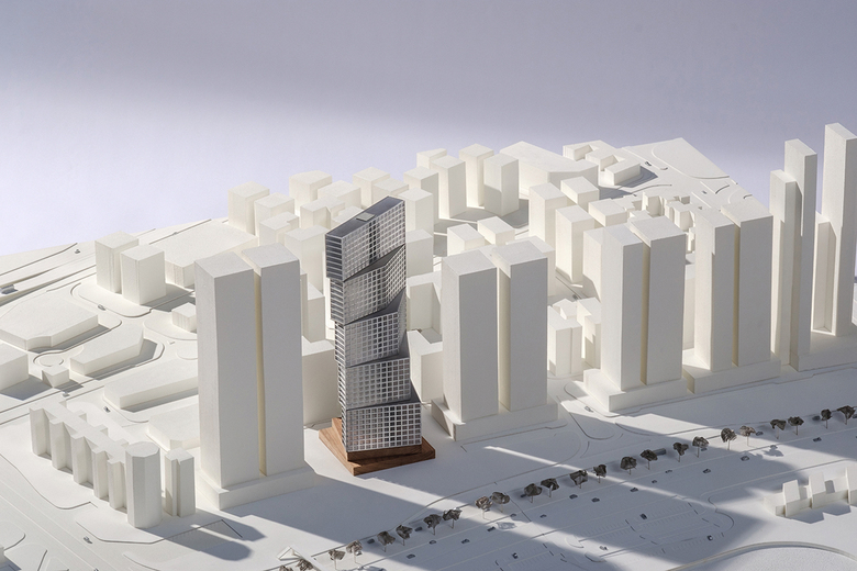 OMA / Iyad Alsaka and Reinier de Graaf, in collaboration with Kuwait-based consultant Pace as a local partner, have revealed their design for the Wafra tower, a residential tower in the Hessa Al Mubarak District along the Kuwait City waterfront. OMA’s proposal was selected from among three competitors in a competition organized by the Wafra Real Estate Company.
