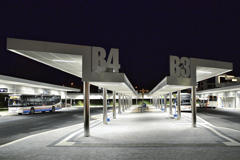 Mit dem ZOB entsteht ein regionaler Verkehrsknotenpunkt, der von Bussen bedient wird und in unmittelbarem Anschluss an die Bahn steht.
