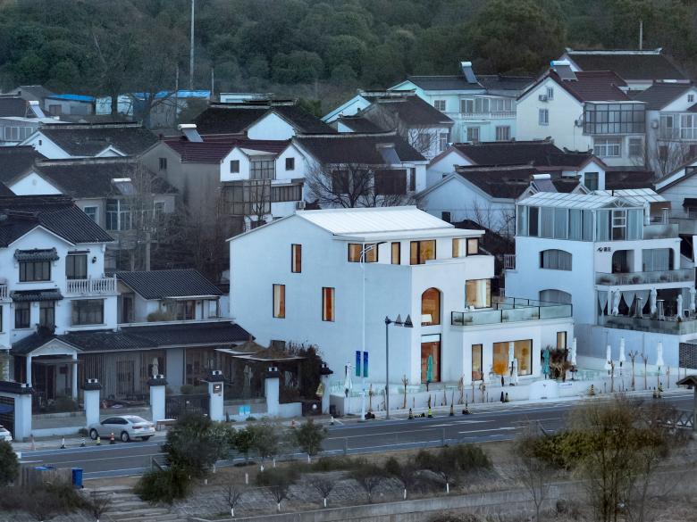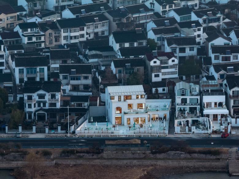 本项目坐落于苏州太湖边的光福镇,项目周边被各个年代的矮旧村民自建房包围,西南面与太湖只隔一路,视野开阔,交通便利。场地位于苏州城西28公里的太湖之滨。东与藏书镇接壤,西滨太湖,南同胥口镇毗连,北接东渚,距离太湖度假区仅10分钟车程。