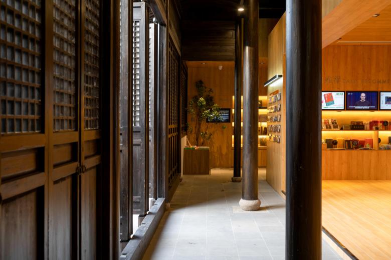 修旧如旧的建筑经过这番新业态的“重置”,在建筑师的手中变得与周边景色融合的越发相得益彰,虽是音乐书店,在一众老街巷沿袭下来的传统空间形态中,设计者们将一个现代概念的空间模式融入到寻常邻里中。他们并没有破坏这几进院子的格局,而是做到了保护式更新,将老的建筑、构件通通保留下来,并且还留住了最为难能可贵的市井生活方式。这些都在时光的渲染下变得更加古朴,透射出怀旧的色彩与记忆的温度。