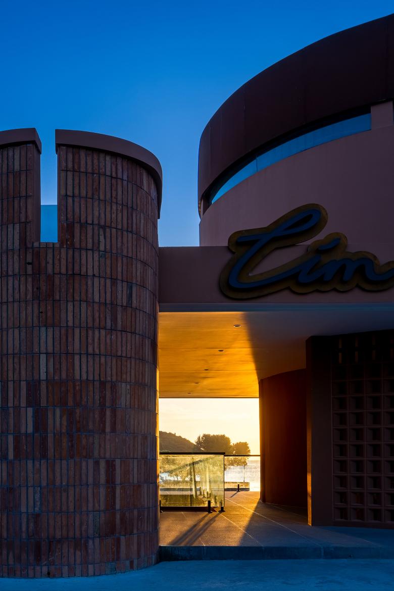 项目位于太湖大桥脚下,是一个存量改造与新建结合的项目,建筑师希望通过材料、光影的运用,探索空间与自然之间的关系。相比于从太湖大桥上就可以看见的城堡咖啡馆部分,民宿部分显得更为隐秘,需要完全通过大桥,才可以看见全貌。地块内拆除了一栋锯齿形建筑后,留下一个两层楼的圆筒。基地地理位置优越,背靠太湖山水,建筑师希望建成后的建筑构图尽量简洁,因此新建部分精简成了一个简单的长方体,与存量的圆筒之间,通过一个大平台相连接。在自然山水中,用最简单的方圆构成几何的美感。