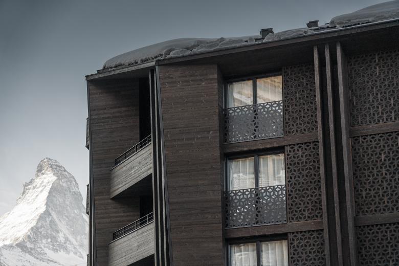 Il concept architettonico complessivo — dal caratteristico linguaggio formale della facciata in legno scuro alla progettazione delle planimetrie, fino alla cura per l’interior design e la scelta di materiali, colori e tessuti — è stato ideato dallo studio altoatesino Perathoner Architects, guidato dall’architetto Rudolf Perathoner e dal suo team. Lo studio di architettura MLS di Zermatt, in particolare il project manager Andreas Imboden, è stato responsabile della perfetta realizzazione tecnica della progettazione. Insieme a Perathoner Architects, ha curato la fase esecutiva in loco e garantito un’organizzazione fluida del cantiere.