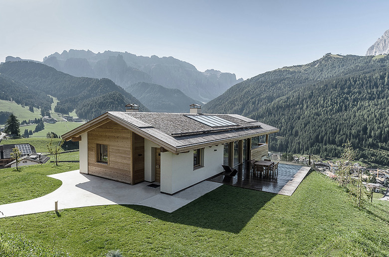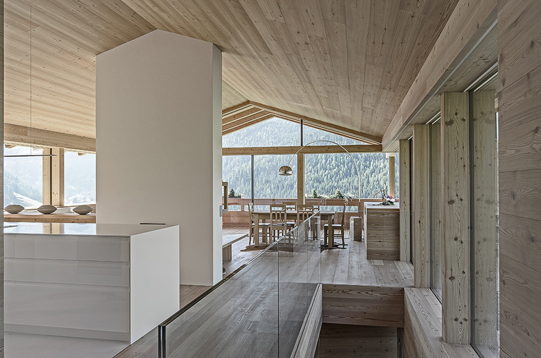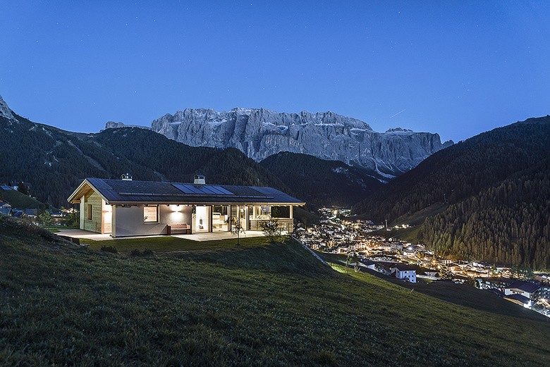 La casa unifamiliare, progettata da Rudolf Perathoner Architects, si trova su un ripido pendio appena fuori dal paese montano di Selva di Val Gardena, in una posizione unica con vista mozzafiato sulle splendide Dolomiti.