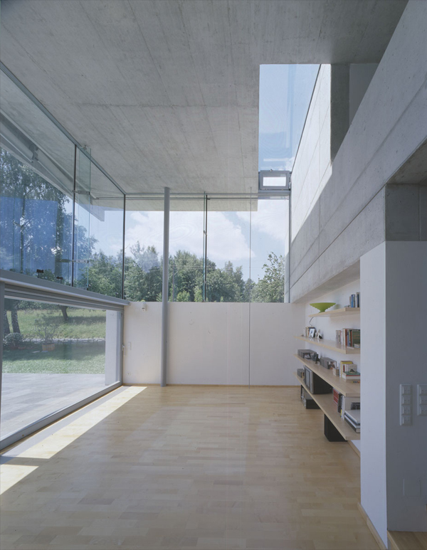 Gabriela und Wilfried pflegen die Offenheit: offen für Freunde und Gäste und ein offenes Leben unter freiem Himmel. „Outdoor Living Standard“ ist daher ihr formuliertes Programm für ein Wohnhaus im Südburgenland. Vorgefundene Landschaftsterrassen werden gebaute Ebenen, die sich als vielschichtige Wohnstrukturen scheinbar ohne Grenzen von außen nach innen ziehen. Fließende Räume werden umhüllt von einer fließenden Hülle, gegossen aus flüssigem Beton.