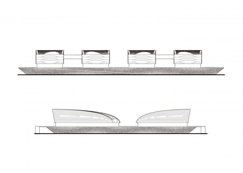 Peripheral people flow arrives through public transport and comes to the interior of the superstructure industrial park through the vertical traffic at the ends and corners of the landscape axis. A green landscape walking green valley is planned in the middle of the base, which is open to the city, organically connecting the mountain, the city, and the sea with the project base, creating a shared urban axis from the mountain to the sea.