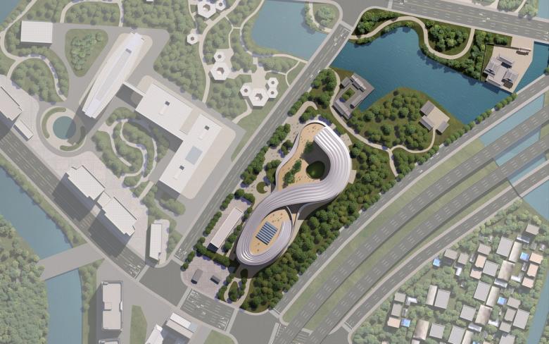 The design of this case integrates the concept of ‘Eye Valley + Infinity’, cleverly combining the mathematical symbol of infinity ‘∞’ in space, forming the intention of ‘Eye Valley’, and at the same time, implying that China Eye Valley's infinite development possibilities, integrating the project's growth and Eye Valley's planning and development. It creates an exhibition building with comfortable public spaces and a hotel building with excellent views. The organic combination of high-end exhibition and boutique hotel creates the image landmark of China Eye Valley town and the science and innovation corridor around Daluoshan.