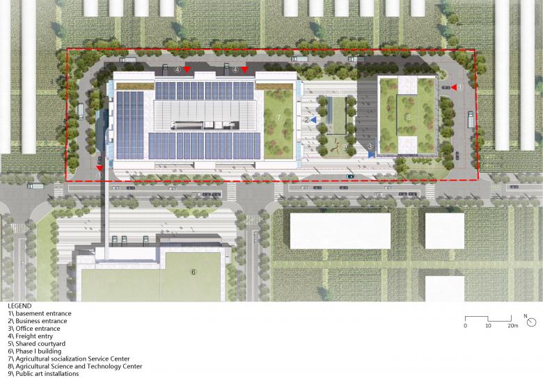 The agricultural development of the city of Longgang inspired the design team to incorporate four key values: foresight, science, efficiency and harmony in order to properly reflect the value of a digital, multifunctional project in an urban area and as a place for people to gather. Activating the space through digitalisation enables a dialogue between the traditional and the future. Our design embraces ancient Eastern philosophies that look to science and humanity, and presents them in a modern way.
