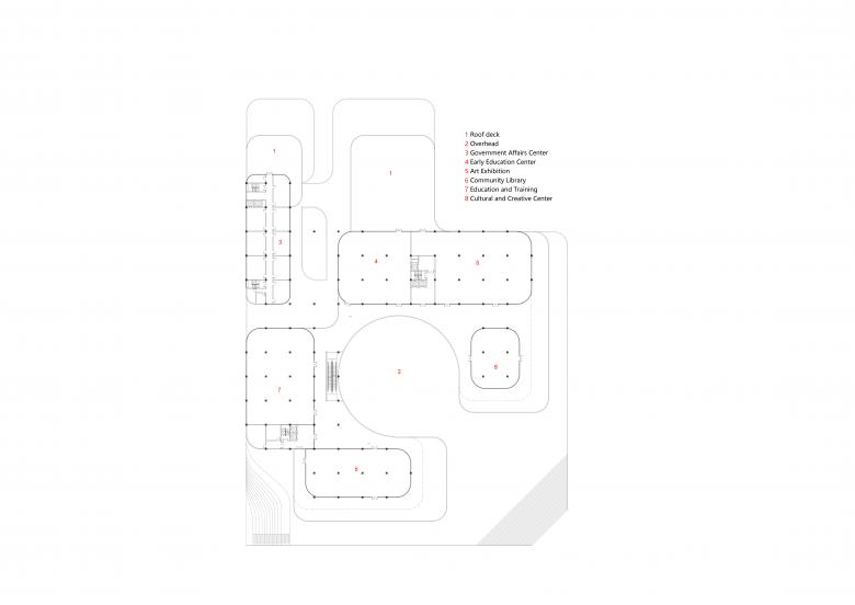 Citizens do not like high-rise buildings because they block the sunlight of the residential area and the view of the park. In order to address the specificity of this site, we used the podium to express this, leaving behind the serious central axis of the official building, and replacing it with a flowing space where the inside and the outside are united to show a sense of freedom and openness.