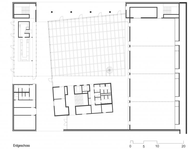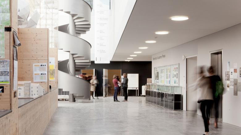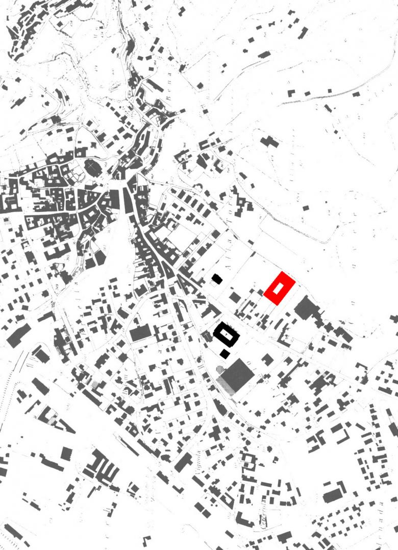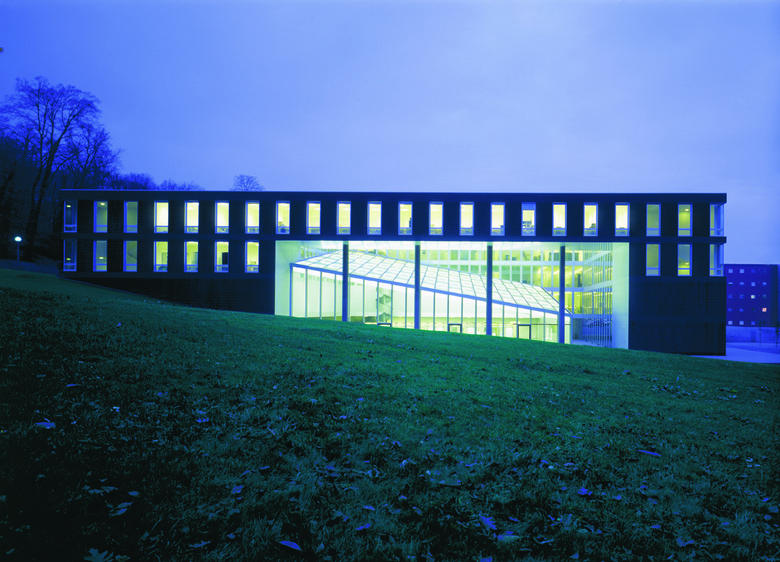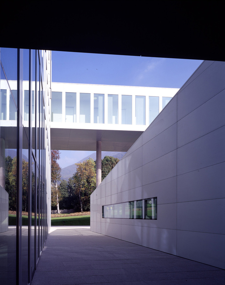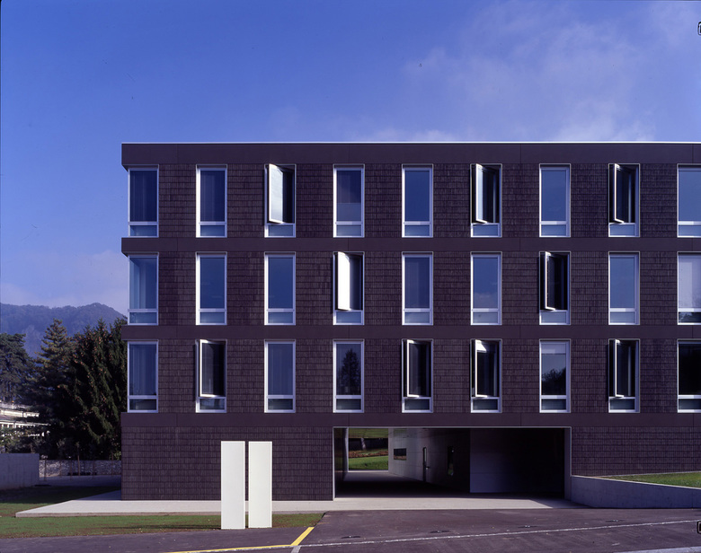 New construction of a study building for the architecture department of the Università della Svizzera italiana. The building has an atrium hall, lecture halls, studio space, offices, a model workshop and a cafeteria. The project resulted from a national competition in 1998.