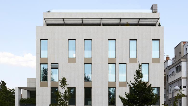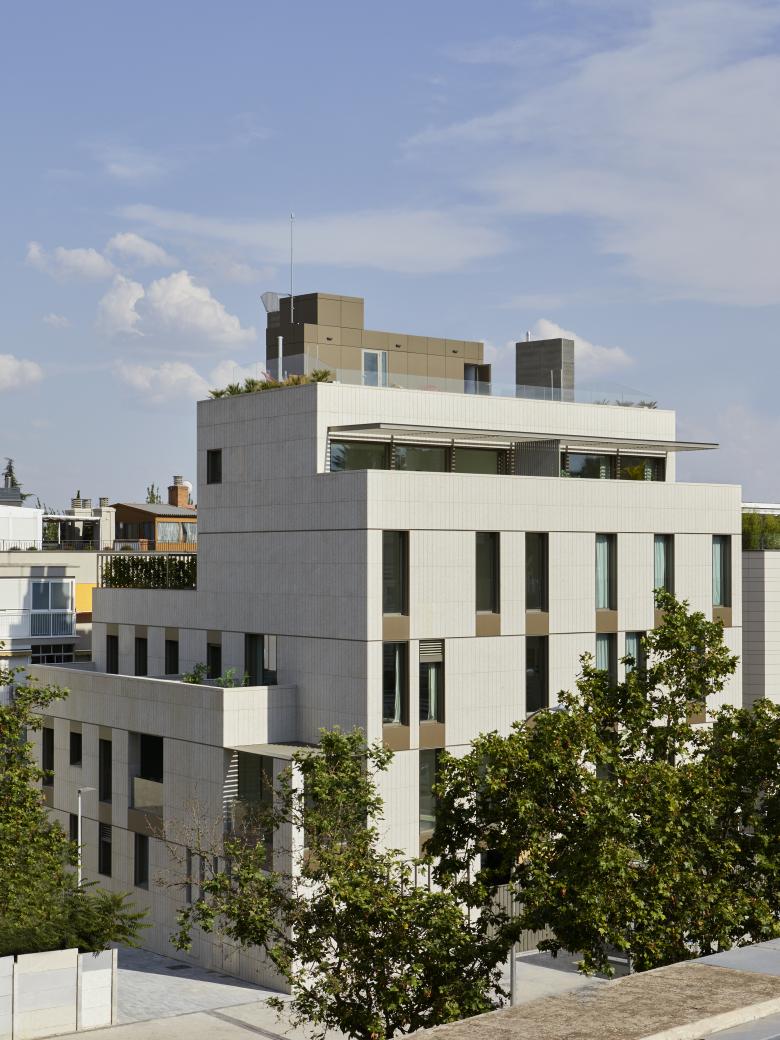Edificio de uso residencial exento de obra nueva, en un entorno urbano consolidado en el corazón del barrio de Chamartín. Alberga 7 viviendas de 2, 3 y 4 dormitorios, 19 plazas de aparcamiento, y espacios comunitarios como gimnasio, piscina en cubierta y terrazas.