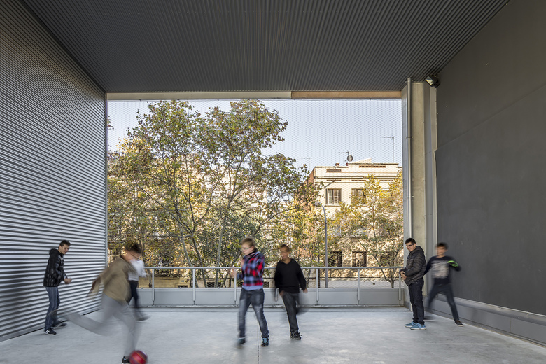 The large outdoor space on the first floor provides a visual and real relationship between the street and the plot’s green space. Children play in altitude in direct contact with urban life.