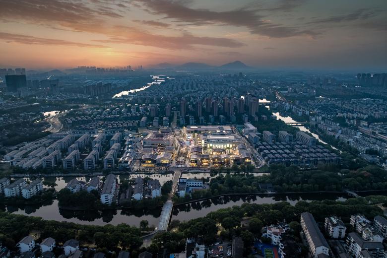 Located in the heart of Shaoxing’s ancient city, the project is only 2 kilometers away from the famous historic and tourist districts, and adjacent to Fushan Park and the Shaoxing Museum. Blessed by Shaoxing's extensive network of riverways, the site is surrounded by water on all sides, while convenient urban accessibility is ensured with its primary accesses connected to the city’s main roads. As CR LAND's first cultural, commercial, tourism, and residential complex in Shaoxing, the development adopts a “blocks + mall” commercial model, merging the historical legacy of the 871 Chip Factory with its valuable industrial memory. The project aspires to establish itself as a dynamic urban hub, combining dining, culture, entertainment, and retail, revitalizing the commercial and lifestyle ambiance of the ancient city.