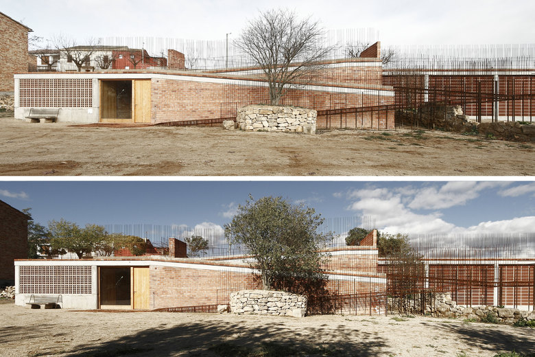 During January of 2007, the construction works of a secondary pipe of the water distribution mains in Segarra-Garrigues system, caused an unexpected appearance of archaeological ruins from an ancient construction of 4.800 years in Seró (Artesa de Segre, Lleida). The most important point of this discovery was the megalithic nature of sandstone slabs and specially the accuracy of geometrical decoration sculpted. Stones with soft relief that, at the same time, were parts of ancient statues reused from a previous sculptural monument. Two patches that are not in use and next to the scales square, is the place where is projected and built an small cultural building with different type of uses and spaces. A construction projected with local materials that, at the same time, is the topography to beat the drop of one floor between square and patches. A succession of mild ramps with soft and elastic limits made of corrugated steel that suggests different paths and covers the different conditions of the public space projected... clay and humus platform between the square and the prepirinenc horizon, cliff plane as a viewpoint on the fourth of steels where we can see the archaeological ruins... a corner space looking to west orientation with winter sun and vegetal cover during the summer, some banks recycling the stones of one of orchards and different carpets of floors alternating the use of materials such as clay, iron, topsoil, granite gravel… the shadows of two hackberry recovered... and the memory of the old orchard with the spontaneous regrowth of chard. In the inside, the space of the wine offers the product of the local cooperatives, and at the same time is the village bar. Also a multipurpose room that blends the daily uses as a social centre with the introduction to the museum area where is documented the discovery and are showed the pieces of the megalithic tomb… finally start entering to the room of the steel …a spiral tour with an almost imperceptible slope… surrounded by ceramic pieces that lets in the dim light, the air, the smells of the countryside, the fog… light intensity goes down, the ceramic pavement disintegrates, and to get to the camera the overhead light focuses the eye on the etched surface of each of the steel… silence… slowing time in a space of accurate contemplation, in a horizontal plane of clay powder showing the footprint of each visitor… quietly and in reverse start to go out with no possibility of crossing with other… gradually intensifying light and noise, until the horizon of a wheat field comes to find us and takes us back to the common agricultural landscape of the area.